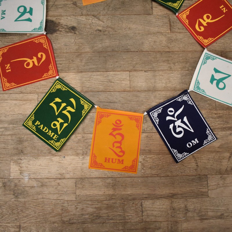 Estas autenticas banderas tibetanas han sido elaboradas a mano con los diferentes mantras (palabras sagradas en sánscrito) en ellas, son ideales para decorar tanto en interior como en exterior.
