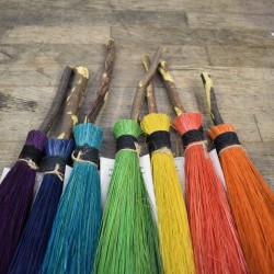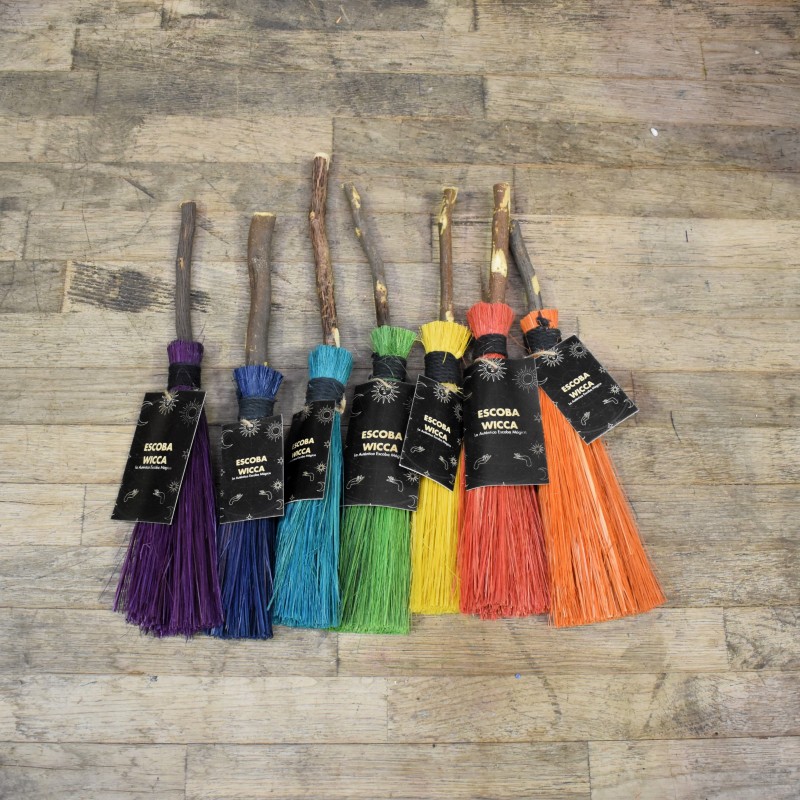 Las escobas de bruja son una icónica herramienta que forma parte de la cultura Wicca y de Magia Pagana. Se utilizan para realizar diferentes tipos de rituales, sobre todo de limpieza energética para purgar energías de carga negativa. Cada escoba se elabora a mano, con madera y fibras vegetales, siguiendo tradiciones ancestrales, cada escoba es única y son elaboradas con mucha dedicación y esfuerzo por maestras artesanas.