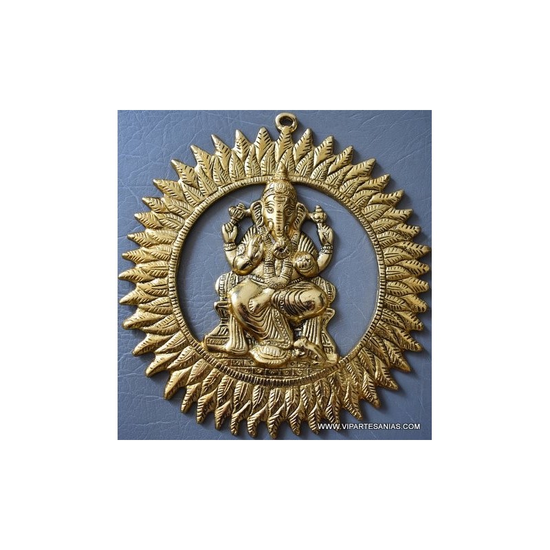 Colgante Ganesh sol dorado en metal 22 cms.