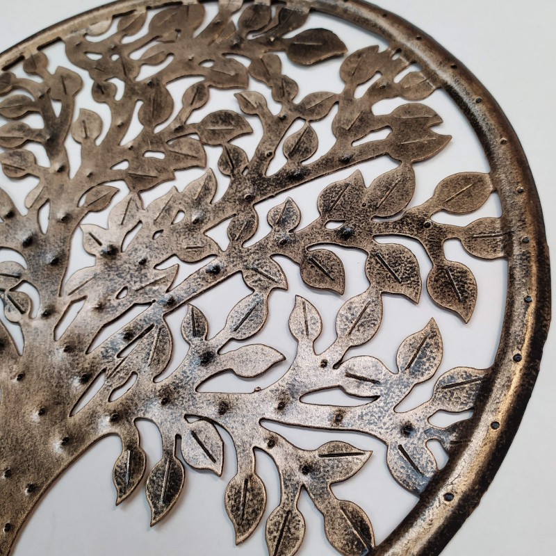 Elegante móvil decorativo de metal inspirado en el Árbol de la Vida, con hojas engastadas con minerales correspondientes a cada chakra, aportando armonía, equilibrio y energía positiva a cualquier espacio. Cada pieza es única y artesanal, ideal como decoración esotérica o regalo especial.