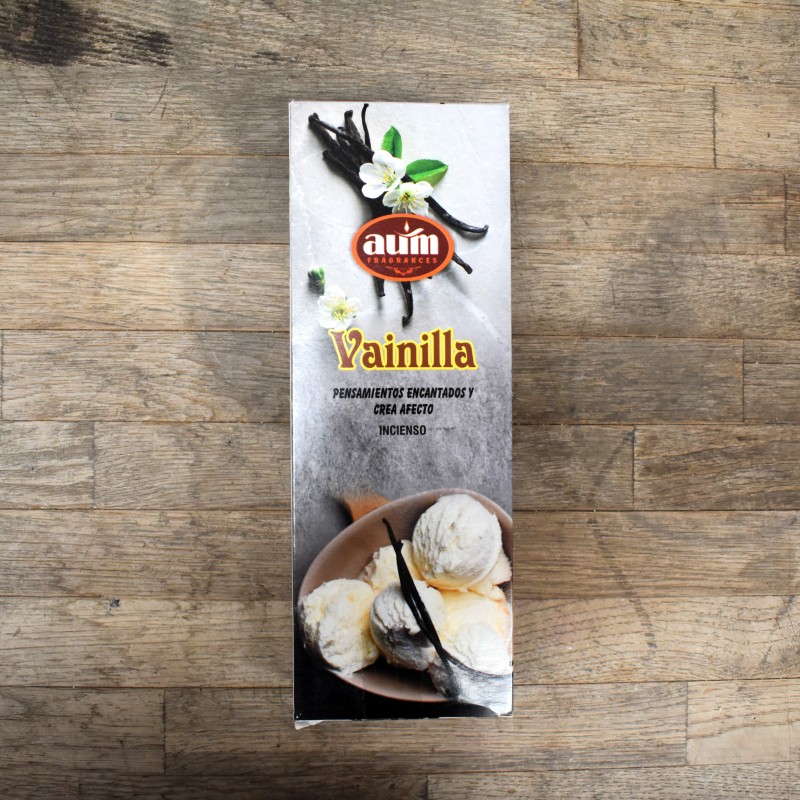 Incienso de la marca AUM, elaborado artesanalmente con productos naturales, incienso de Vainilla