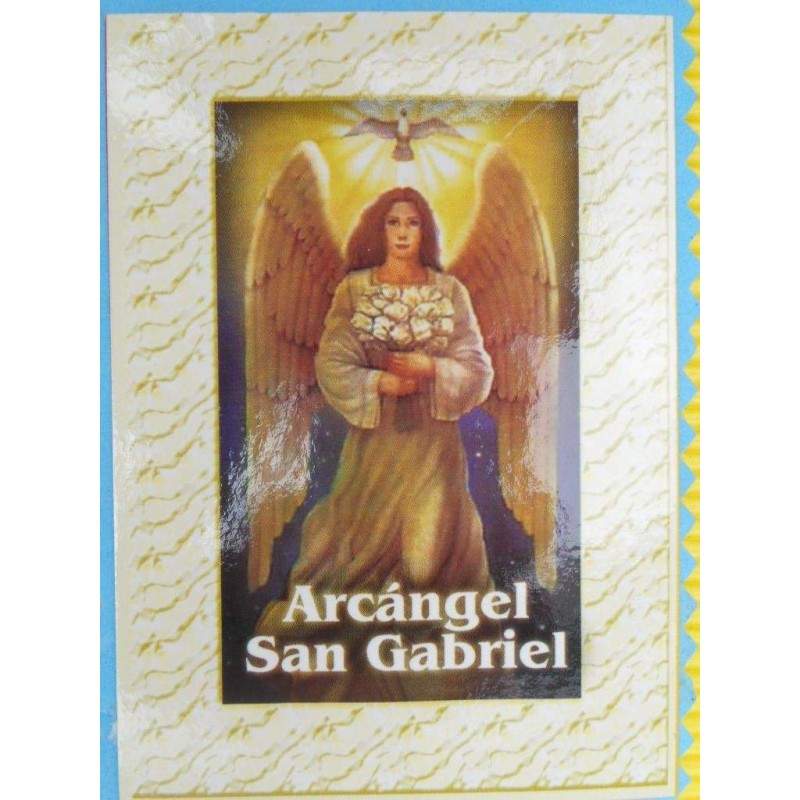 Arcángel San Gabriel, cinta seda gigante con 2 imagenes y texto. 12 x 18 cms.