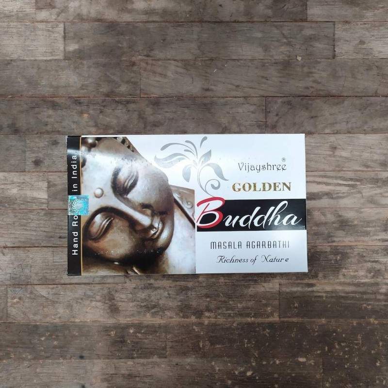 Incienso Golden, fragancia palo santo salvia blanca, calidad masala. Este conocido incienso tiene como ingredientes especiales la PLUMERIA, conocido en occidente como el ingrediente frangipani (amapola). Esta especialmente mezclado y formulado con una resina semi-liquida extraída del árbol Ailanthus Malabarica que le da su inconfundible color crema y textura húmeda.