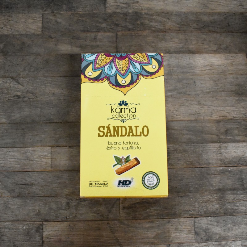 La serie de inciensos Karma de Hari Darshan nos presenta 4 fragancias clásicas; Canela, Lavanda, Rosa y Sándalo, en formato de varillas, elaboradas artesanalmente con la mejor materia prima, como ya acostumbra la reconocida marca con el resto de sus productos. El Sándalo  se utiliza para atraer la buena fortuna, el éxito y el equilibrio a nuestras vidas