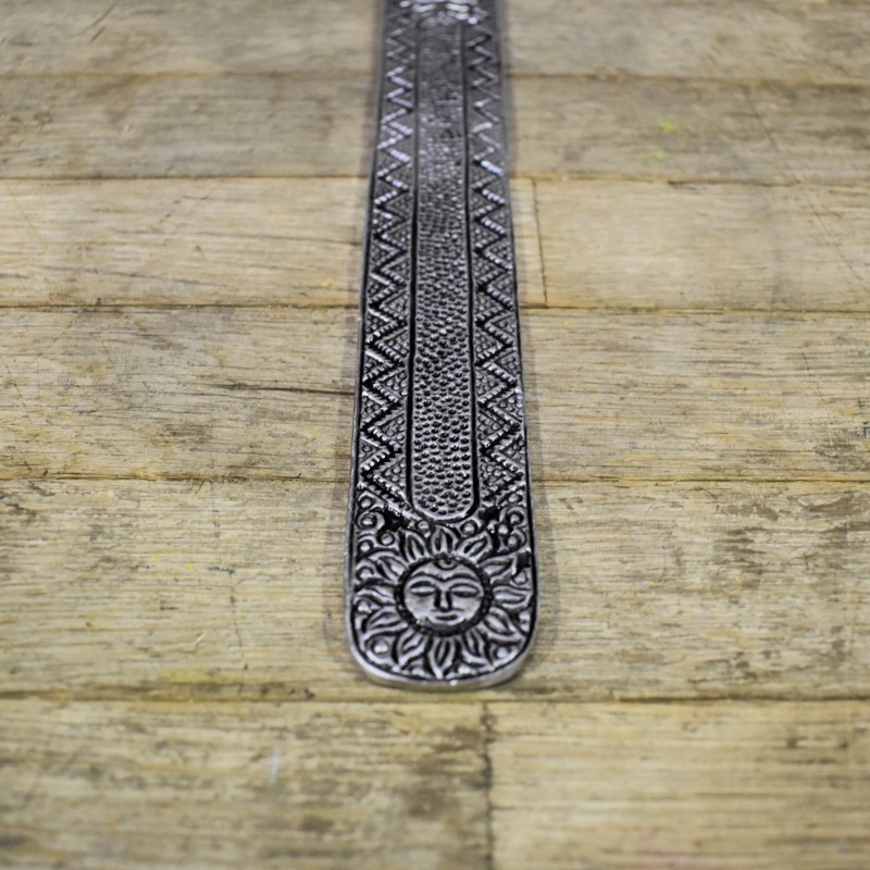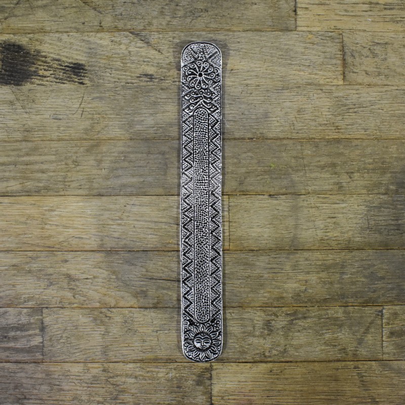 Tabla porta incienso de metal, decorado con precioso grabado tribal, ideal para quemar en el varillas.