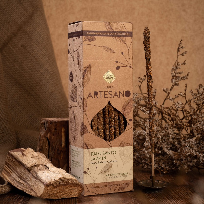Incienso Artesano de Sagrada Madre, elaborado a mano con Palo Santo Jazmín completamente naturales, incienso ideal para Armonía y Calidez.